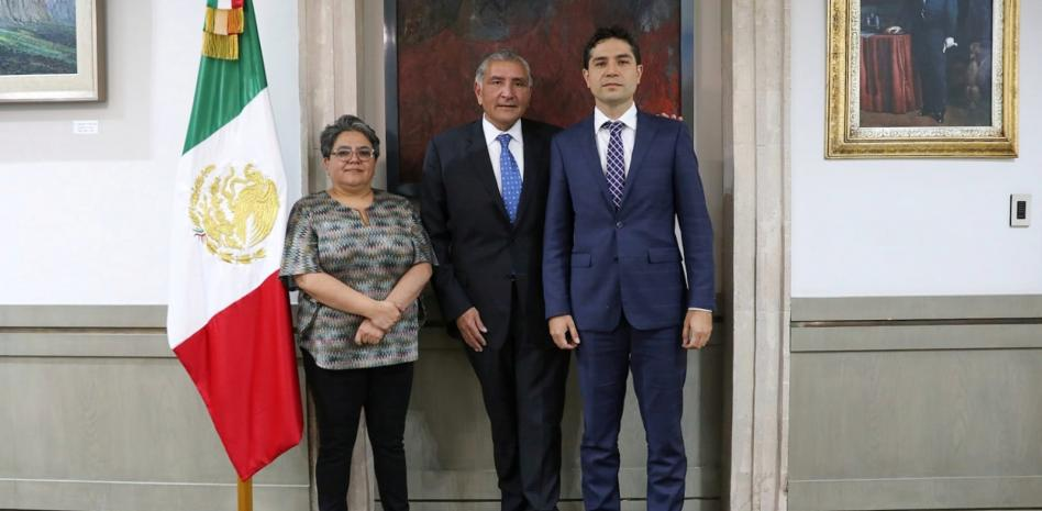 Por instrucciones desde Palacio Nacional, el secretario de Gobernación, Adán Augusto López Hernández, acompañado por la secretaria de Economía, Raquel Buenrostro Sánchez, dio posesión del cargo al nuevo jefe del SAT.